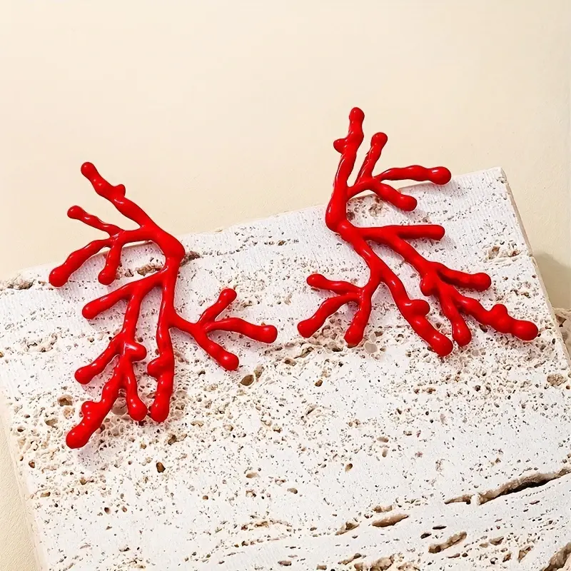 Stainless Steel Red/ Gold Coral Branch Stud Earrings