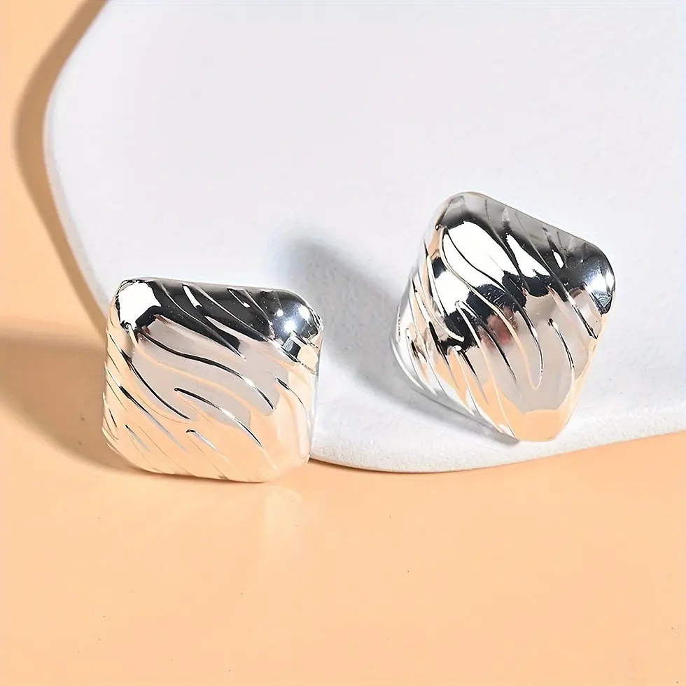 Silver Tone Stud Square Earrings